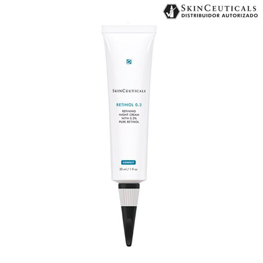 - Aplicar la cantidad equivalente a un guisante de Retinol 0.3 por la noche sobre la piel completamente limpia.
